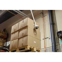Die AXIS T91B51-Deckenhalterung für den Innen- und Außenbereich eignet sich optimal zur Installation von PTZ-Domeoder unbeweglichen Dome-Kameras an niedrigen Decken oder in Dachüberhängen. Wenn die Länge nicht ausreicht, sind zwei optionale Verlängerungsrohre (30 oder 100 cm) verfügbar. Die Deckenhalterung kann schwingen, so dass sie bei einer Kollision mit Gabelstaplern oder hohen Fahrzeugen nicht bricht. Dank des Kugelgelenks hängt die Kamera immer senkrecht und lässt sich auch an geneigten Decken anbringen.