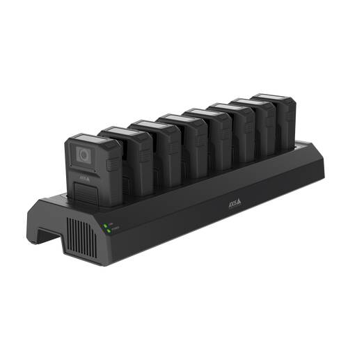 Die AXIS W701Mk II Docking Station 8-bay ermöglicht eine einfache Handhabung von Body Worn-Kameras dank schnellem Laden sowie schnellem, sicherem und einfachem Daten-Offloading.