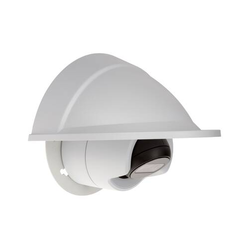 Robuster Wetterschutzschild für die wandbefestigten, unbeweglichen Dome-Kameras von Axis Der Schutzschild schützt die Kamera vor Regen, Schnee und Sonne. Die Unterseite ist mit einer mattschwarzen Antireflektionsschicht beschichtet, die für Kameras mit integrierten IR-LEDs geeignet ist.