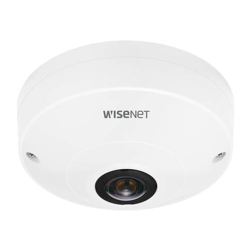 Die Fischaugen-Dome-Kamera der Wisenet Q-Serie für den Innenbereich bietet eine maximale Auflösung von 3008 x 3008 bei 30 Bildern pro Sekunde ohne tote Winkel. 360-Grad-Abdeckung, mit Triple-Codec H.265/H.264/MJPEG mit WiseStream-Technologie, Geschäftsanalyse (Heatmap und Personenzählung), integrierter SD-Kartensteckplatz, PoE